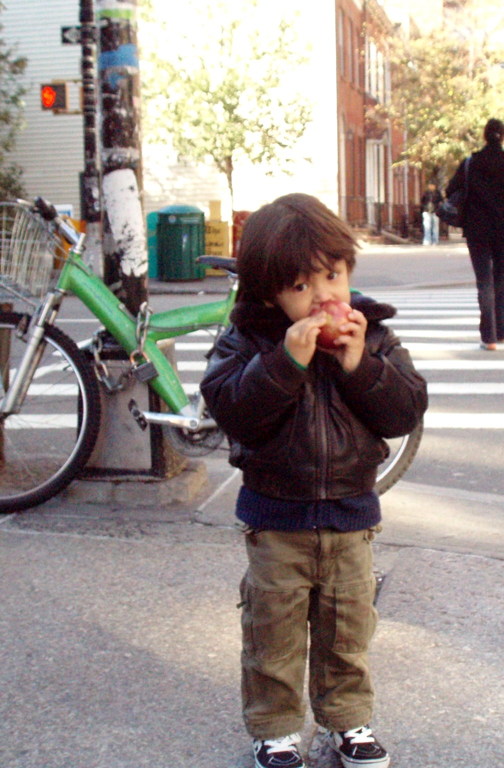 We walked through Bloomberg’s New York, down lower Manhattan’s bleary-eyed morning streets, peered into greasy mud pits at construction sites, gaped at land movers, rushed him past fogged, coffee-toting masses and men in blue hardhats. I held him, held him tight, slowed down my pace, bounced him up and down and laughed, pulled him into my neck and shoulders when the wind made him bow his tender head.