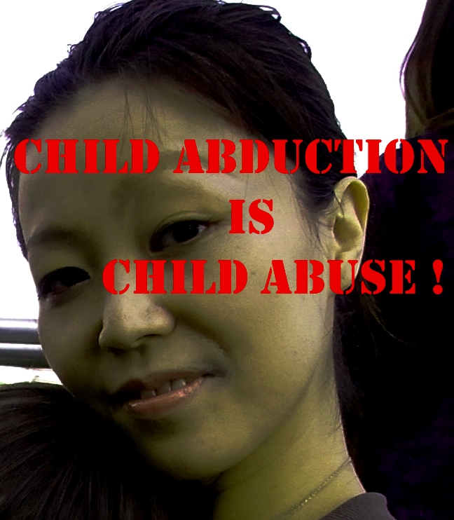 I blame Machico Terauchi. I blame Kensuke Ohnuki. I blame Sayaka Chiba, Miki Sakurada, and all their wicked self-deceiving accomplices. I blame Machico’s insufferable, smug, rich, self-satisfied, hateful family and friends, and the businessmen to whom they whore themselves. I blame the government of the United States for having no principles but those of profit and militarism, therefore knowingly and willfully failing to protect our children from Japan’s tentacles. I blame the people and government of Japan for their horrid false consciousness, indifference, coldness and passive lack of accountability for themselves and the well being of their own children, whereby they condone the stealing of mine. I blame the judges of Japan’s courts who, thinking they are invincible, continually impose their daily will on children, treating them as pieces of property without the least regard for – much less understanding of – their welfare, and who hold fathers’ tenderness and love for their children in contempt. I blame the Japanese Diet, each and every member, whose weakness and subservience creates among them the stupid belief that they are not accountable for this mass atrocity. Complacent and satisfied, they earn their pay packets and their pensions while their people suffer. I blame the systemically profiteering, obsessed financial elites, underwriters and managers of Japan’s cluster of the global economic war whose only concern is to attend to the project of shifting power and wealth upwards to themselves, in the process of which they are willing to deny the humanity and needfulness of the world’s children and parents, and who stand for nothing but the grail of a 3% annual growth rate and the prerogative to commit any mendacity, to kill anything in their path to secure it. And I blame the Japanese press, continually publishing a flood of fiction after fiction about the abduction of children from within and abroad, willingly playing their assigned role – to fill the Japanese public with xenophobia, trump up fear of non-Japanese, and to regenerate bitterly stupid anti-child, anti-male assumptions about the role of men and women in child rearing and the care and need children have of their parents, male and female. Japan’s compliant and sycophantic press is a continual scandal, and brings great shame on them for their obedience, timidity, and repetitive dissemination of ignorance in the tortoise like pose of the uninitiated which they readily adopt.