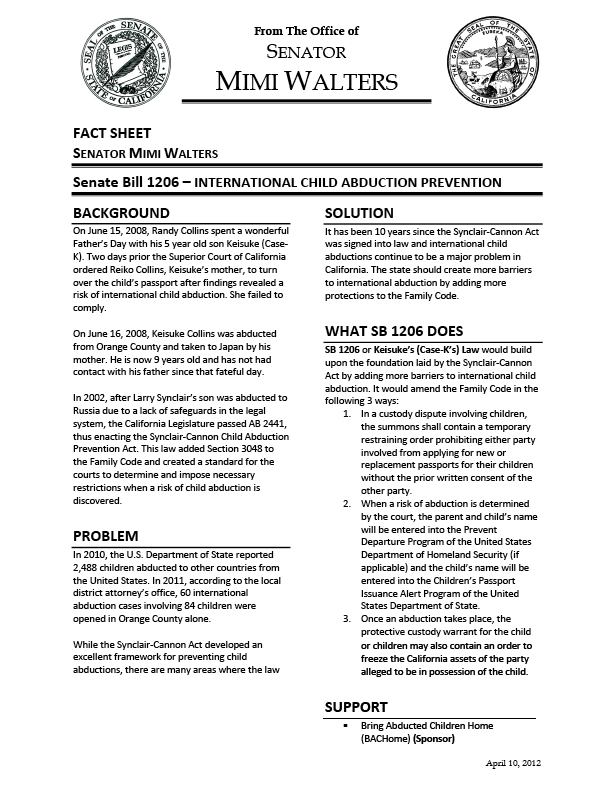 2. California is set to pass and ratify Keisuke’s Law, a new law to attempt to create preventive measures available to state agencies to stop parental child abductors from getting away. More about this legislation here and here. Keisuke’s Law was named for Randy Collins’ son, who was abducted from California. Testimony in the California legislature on behalf of Keisuke’s Law was given by both Randy and Jeffery, and can be seen here: