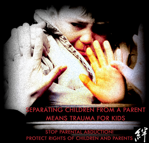 Within Japan, parental vulnerability and the risk of the loss of a child is as great, or greater. Parents are routinely stripped of custody of their children without cause or reason, and without concern for the impact on the child or the child’s bereft family. Japanese’ socially-generalized disregard for the developmental ill-effects of abduction-masked-as-custody makes it easier for the abducting parent to pass the illness along to their woe-begotten children,  who will forever miss not a crumb of information that will explain the wounds that their abductors avow to have sustained, and will seek to assuage their abductors as long as they live, internalizing to themselves the worry, anxiety and uncertainty of their condition, and the loss of their abandoned parent’s care and love.